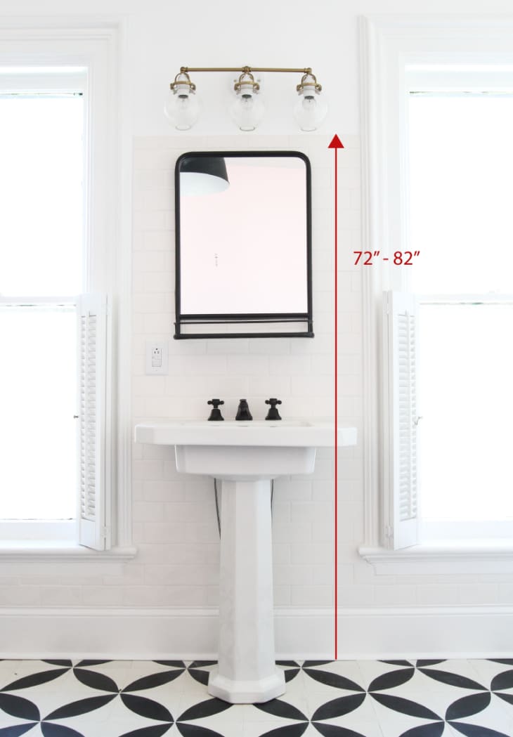 Here are the formulas for calculating the placement of your lights, as well as a free calculator that does it for you! But, remember rules are meant to be broken. The layout should provide enough light, without overwhelming the space. Touch device users, explore by touch or with swipe gestures. So if you have an 8' ceiling, you want the recessed lights no more than 4' apart. An area extending 60cm beyond the bath, shower and wash basin, up to 2.25m above the floor. General lighting is used to brighten the whole room. Lighting the vanity from above. Let's go to calculate the placement for general, task, accent lighting layers and tell. Avoid reflected glare on artwork by shining accent lighting onto the art at a 30 degree angle. Recessed lights are need to be placed every 4 feet if used for general lighting. A successful bathroom lighting plan has multiple light sources, including both overhead and task, with good task lighting at the sink and mirror being key. Measure the length x width of the room.