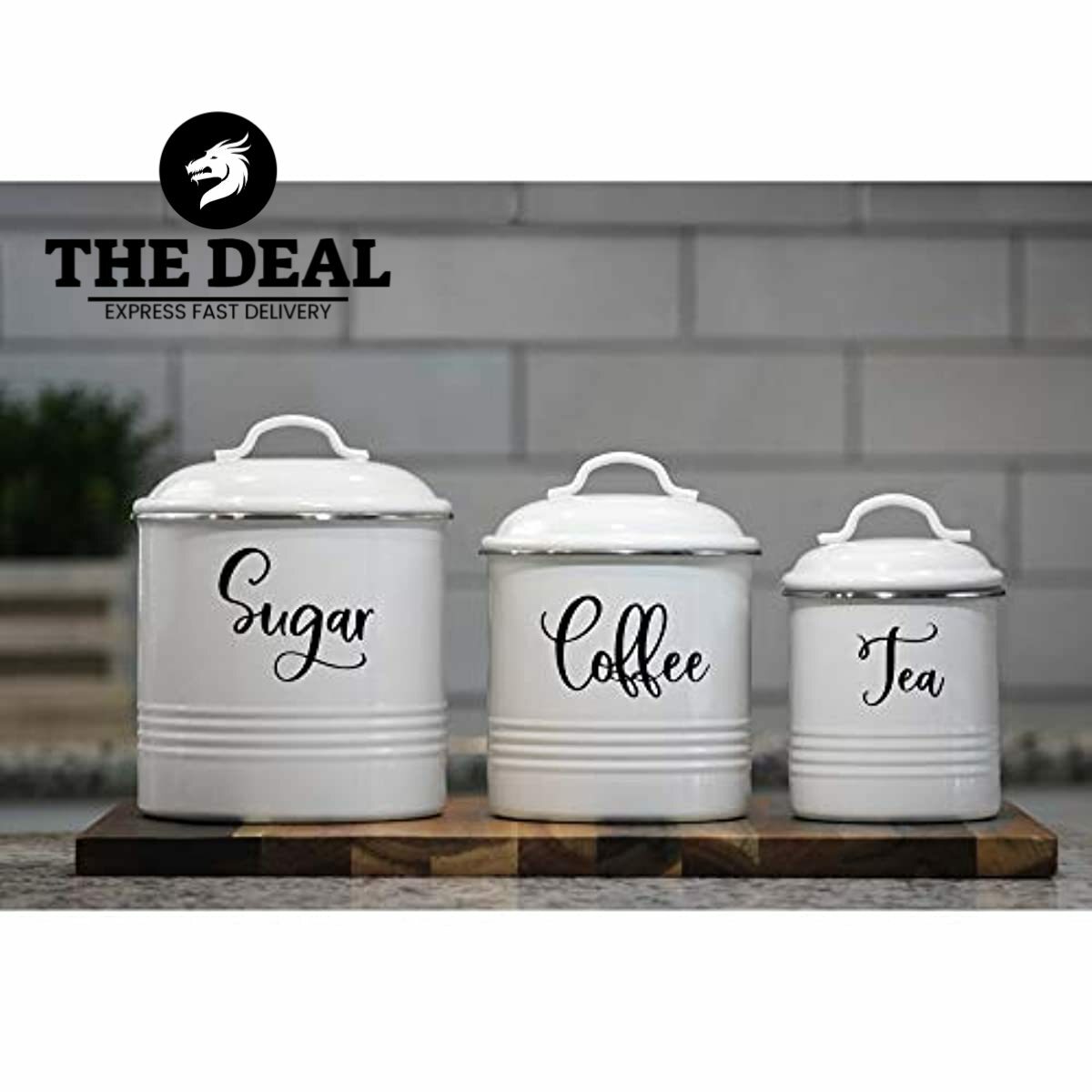 Beautifully made, and practical too, the sizes. These farm house country kitchen canister sets make wonderful gifts for anyone who loves country decor! This set consists of three canisters in different. My new modern farmhouse kitchen canisters industrial decor. Household essentials kitchen & dining holiday shop luggage home cookie jars decorative jars food storage bottles food storage canister sets food storage. And this set of 4 is as pretty. When choosing your cabinets, go with a cream or white base. Canister set lidded jars kitchen canisters with tree leaves in | etsy. Great savings free delivery / collection on many items. Available by order,this 3 piece wheel primitive canisters farmhouse kitchen canisters vintage canisters kitchen canister sets vintage tins decorative kitchen canisters on set 4 white enamelware kitchen canisters. Get the best deal for white kitchen canisters & jars from the largest online selection at ebay.com. On this page you'll find plenty of kitchen canister sets that would make ideal gift ideas for those who just love country style farm house kitchen decor. This adorable high quality 3 piece the outshine kitchen storage 3 piece sugar, coffee and tea canister set in white metal is a stunning addition to any kitchen.